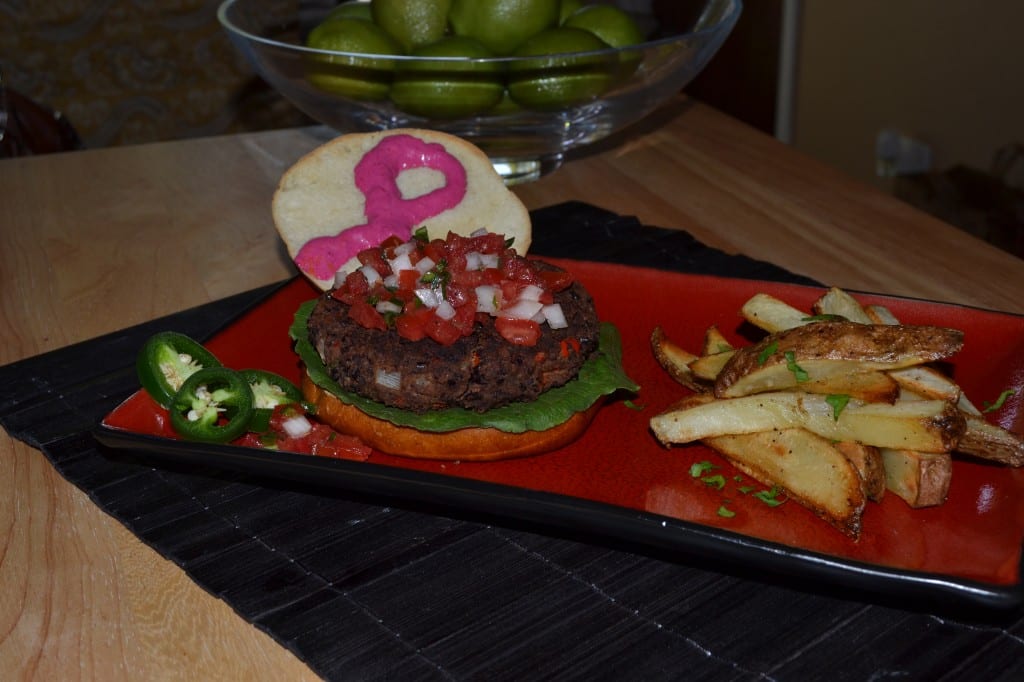 Top with some fresh pico de gallo, fresh jalapeños, lettuce, and Think Pink mayo.