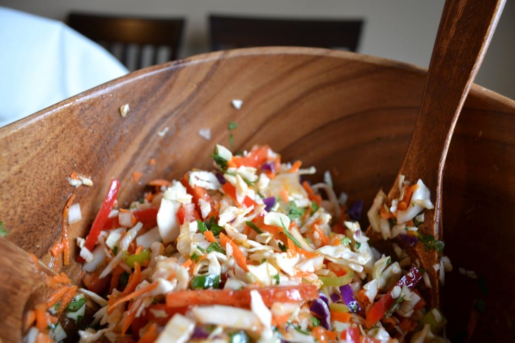 Let the slaw sit in the fridge for an hour before serving to allow all the ingredients enough time to combine.