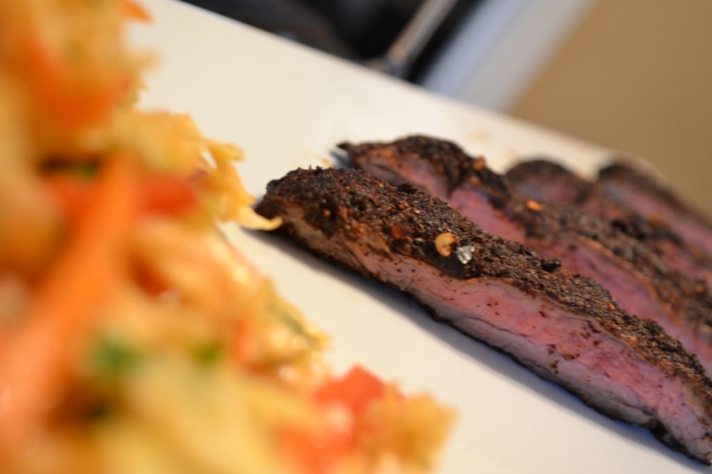 Combine all spices in a small bowl. Rub the spice mixture all over the steak.
