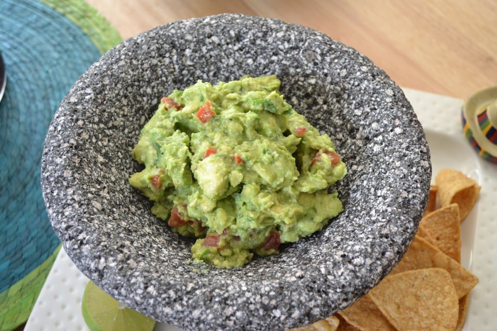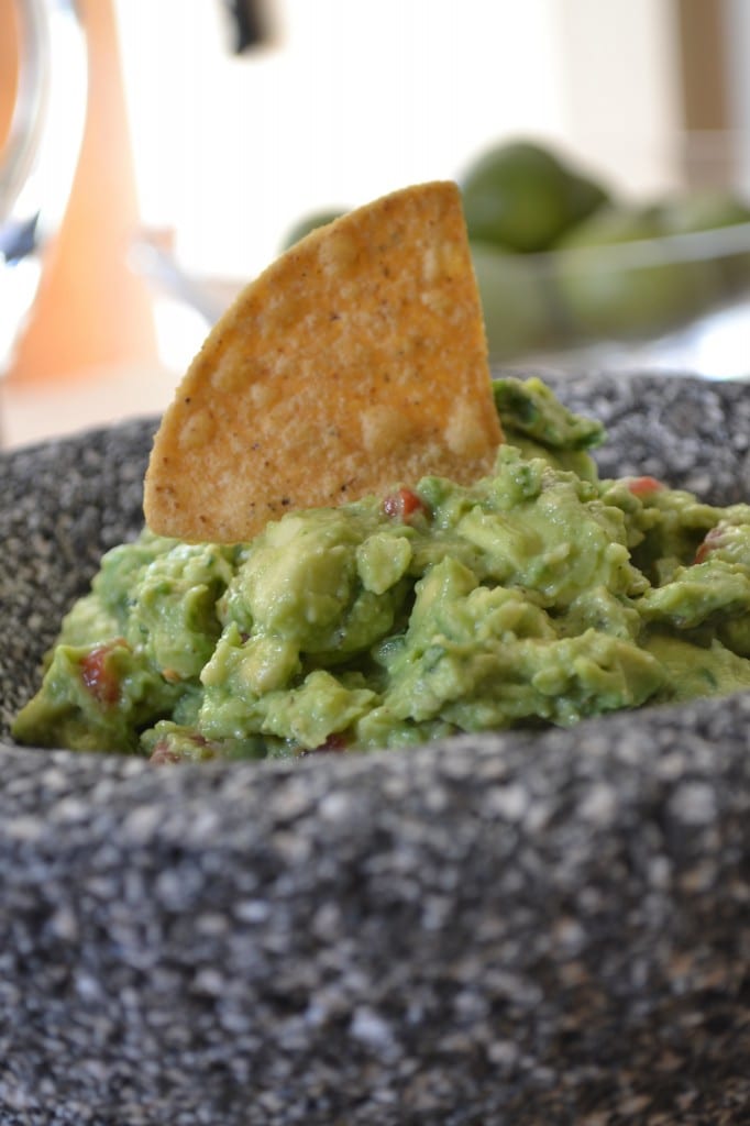Try not to mash too much. You want to lightly fold all the ingredients together, so the guacamole is still a little chunky.