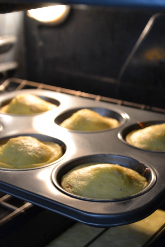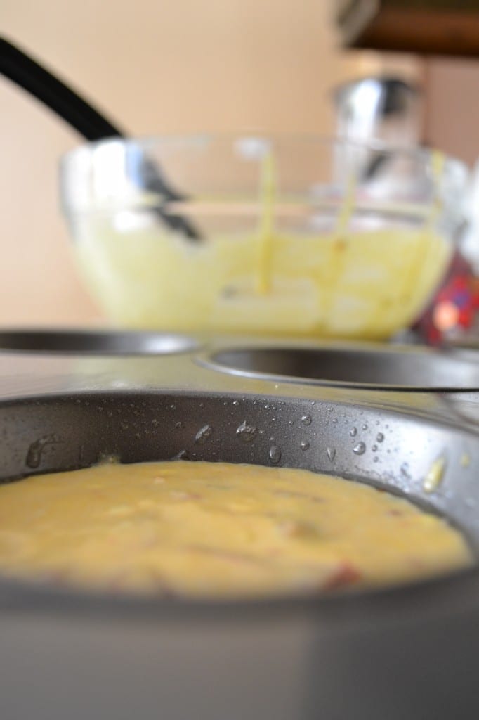 Pour batter into a greased muffin tin and bake at 450 degrees for 15 minutes.