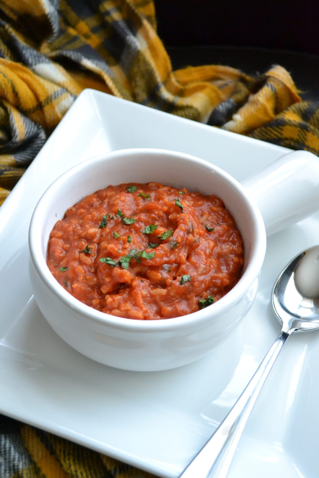 Simmer the ribs, thyme, onions, and garlic for 15 minutes. After 15 minutes, add in the tomato sauce and crushed tomatoes. Also add in one small cans worth of water. Bring to a slow/low boil then add in the rice. Cook over medium heat for about 25 minutes until rice is tender. Remove the ribs and thyme. Stir in the fresh chopped basil.