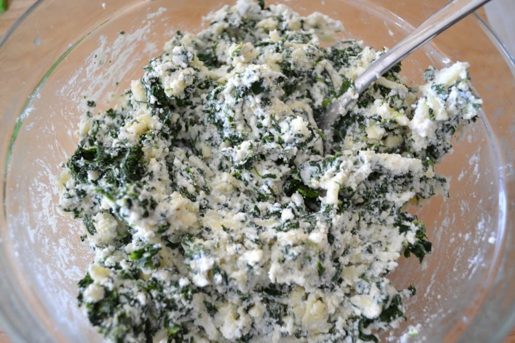 In a large bowl combine all of the ingredients for the filling. Mix until the spinach has been evenly distributed throughout the cheese mixture.