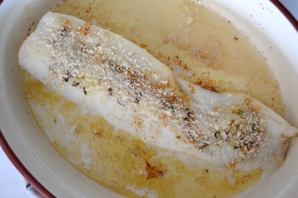After the ten minutes, remove the dish from the oven, sprinkle the panko breadcrumbs on the top of the fish, and then return the fish to the oven for another five minutes.