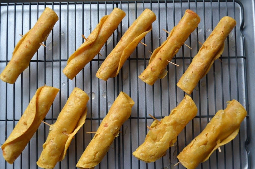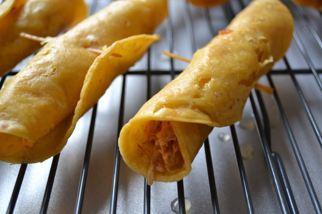 Place flautas on a wire rack to drain and cool. As you can see my flautas making skills improved as I went along. After they have cooled for five minutes, remove the toothpicks.