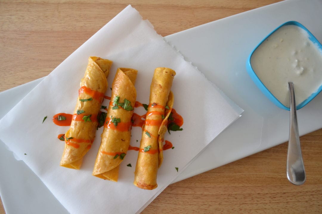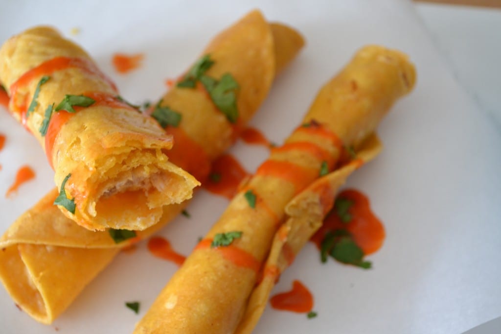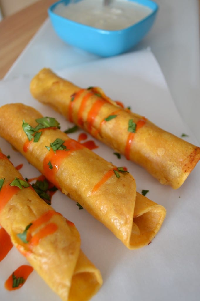 Number three, I was so happy that I just happened to have some of my favorite slow cooker recipe on hand to share with you this aptly timed Super Bowl related recipe for buffalo chicken flautas!