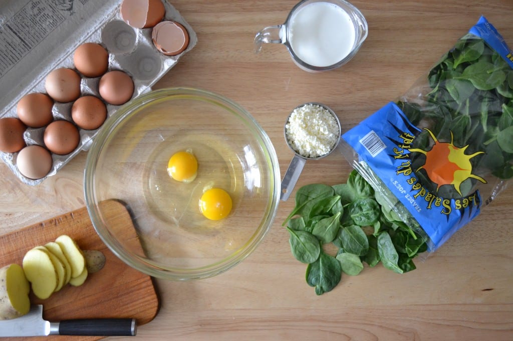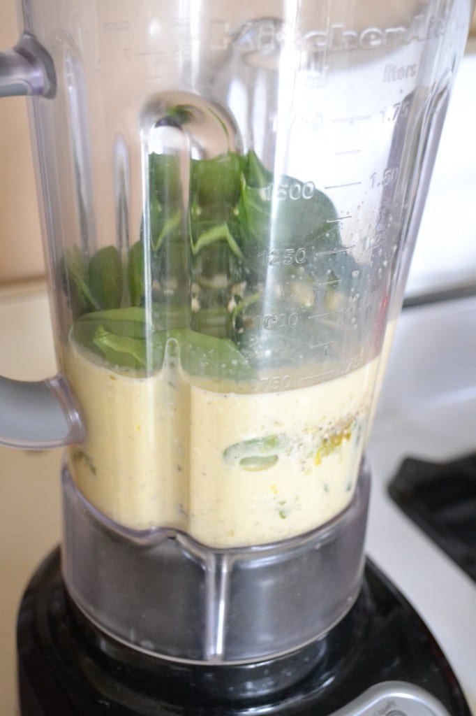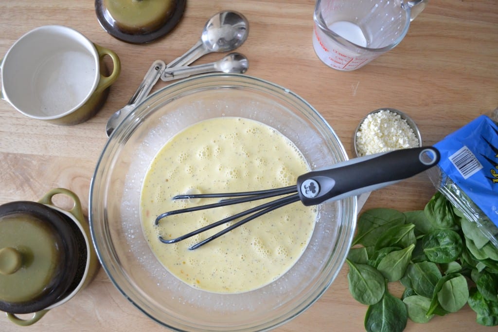 Place the spinach leaves and feta in the blender, pour the egg mixture over the spinach and feta, and mix for about 30 seconds.