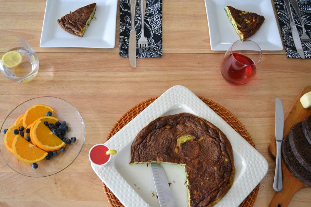 The frittata will be puffy when first removed from the oven. Let it stand for five minutes before serving.