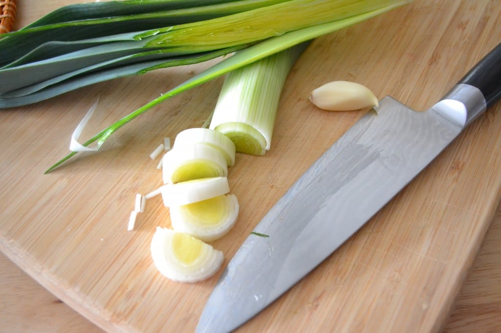 First, rinse each half of the leek under cool running water to remove any dirt or grit. Then roughly chop the leek.