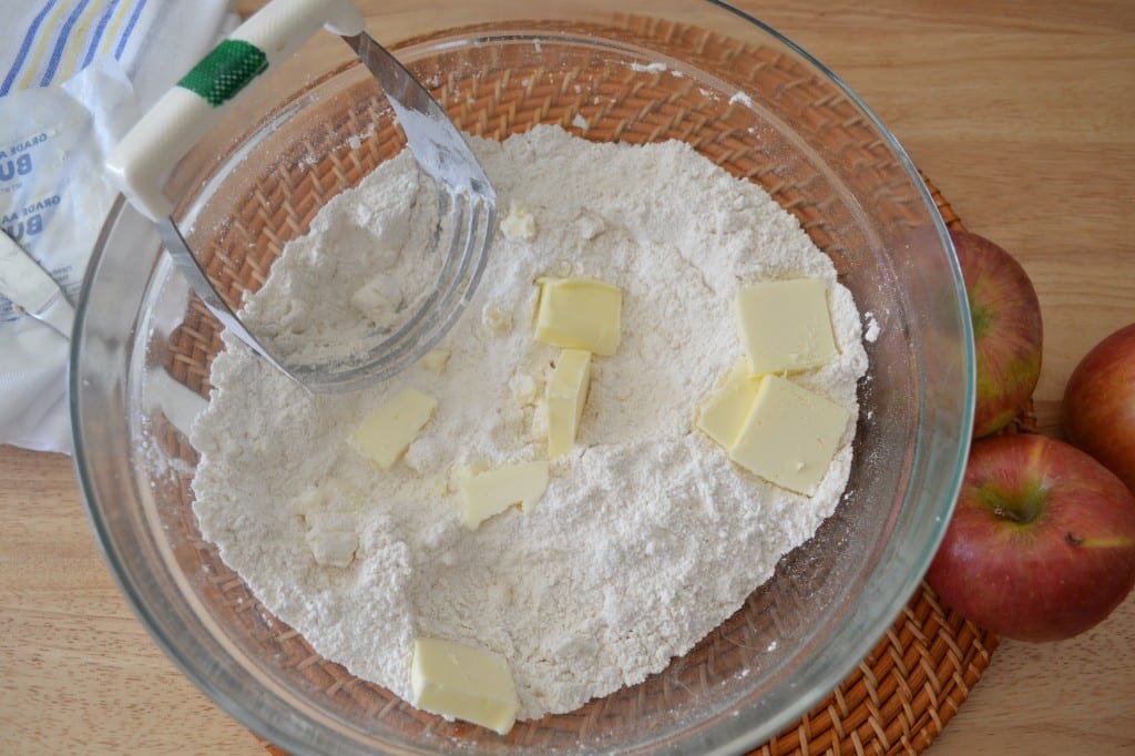 Sift flour, sugar and salt. With knives or pastry blender cut butter into the flour mixture until crumbly.