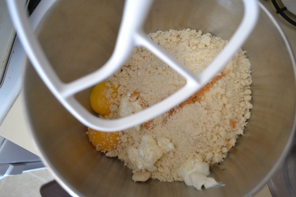 Add egg yolks, vanilla and sour cream and mix thoroughly.