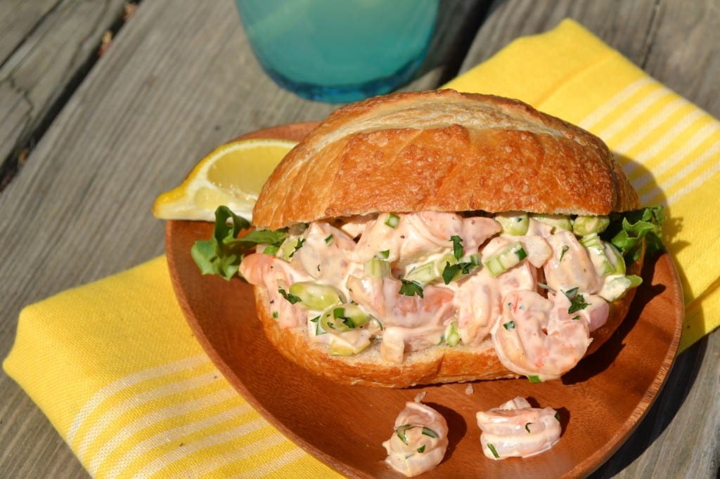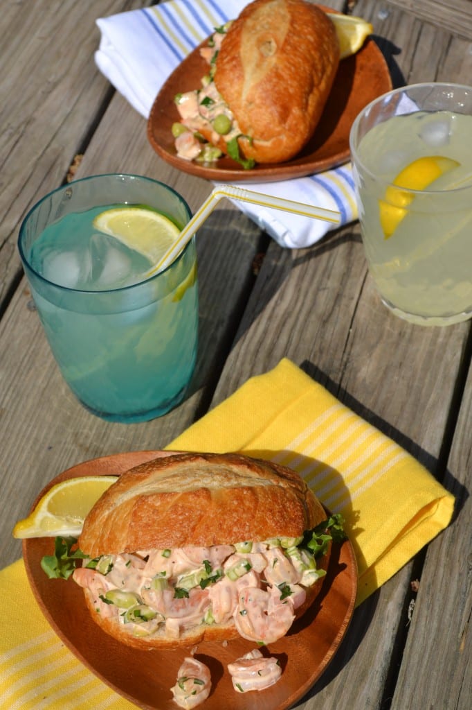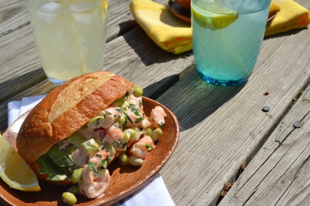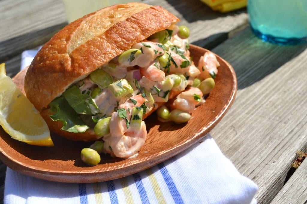 Toast some sandwich rolls, top with shredded lettuce, some of the Asian shrimp salad and then serve.