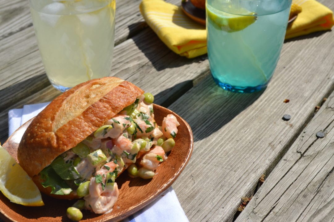 So, when he was sick most recently, I had to spend most of my time picking up his tissues and talking him down from calling an ambulance. I didn’t have much time to cook, that is why I was glad to have all of this cooked shrimp left over from my Mad Men post so I could make a quick Asian Shrimp Roll for myself.