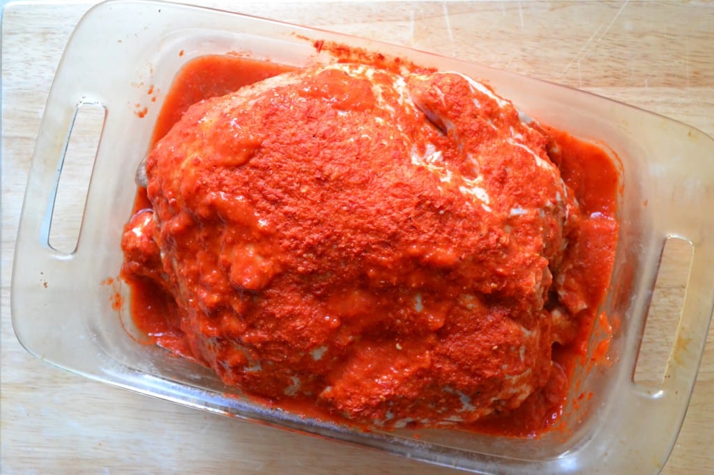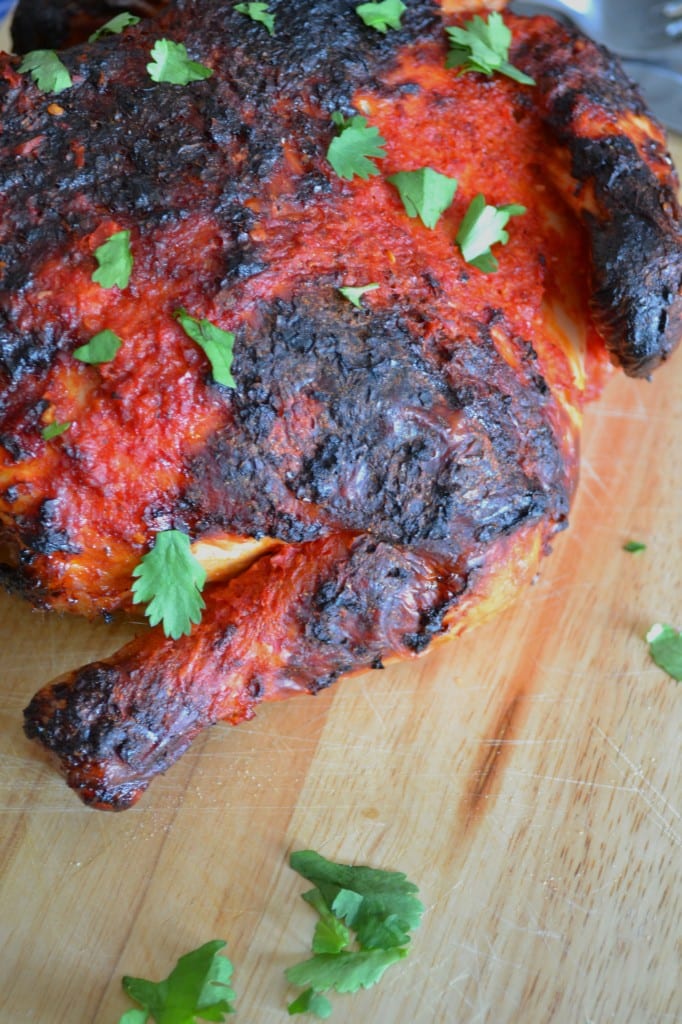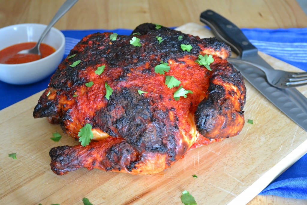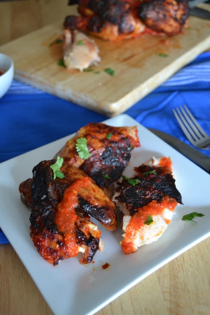 Coat the entire chicken in the tequila-romesco sauce. Marinate in the refrigerator overnight.