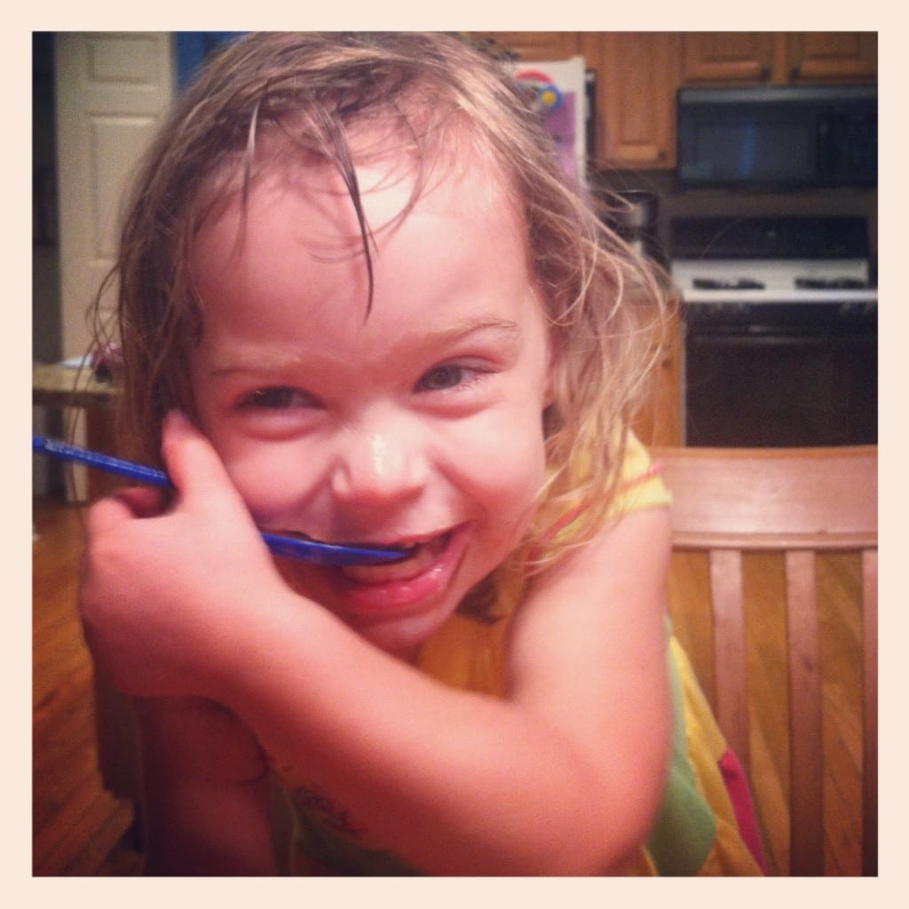 This little cutie is your other sister, Megan. She looks super cute and has the sweetest little sprite-like voice, but beware. When Megan has a lot of sugar or plays in the sprinkler, she becomes a gremlin!