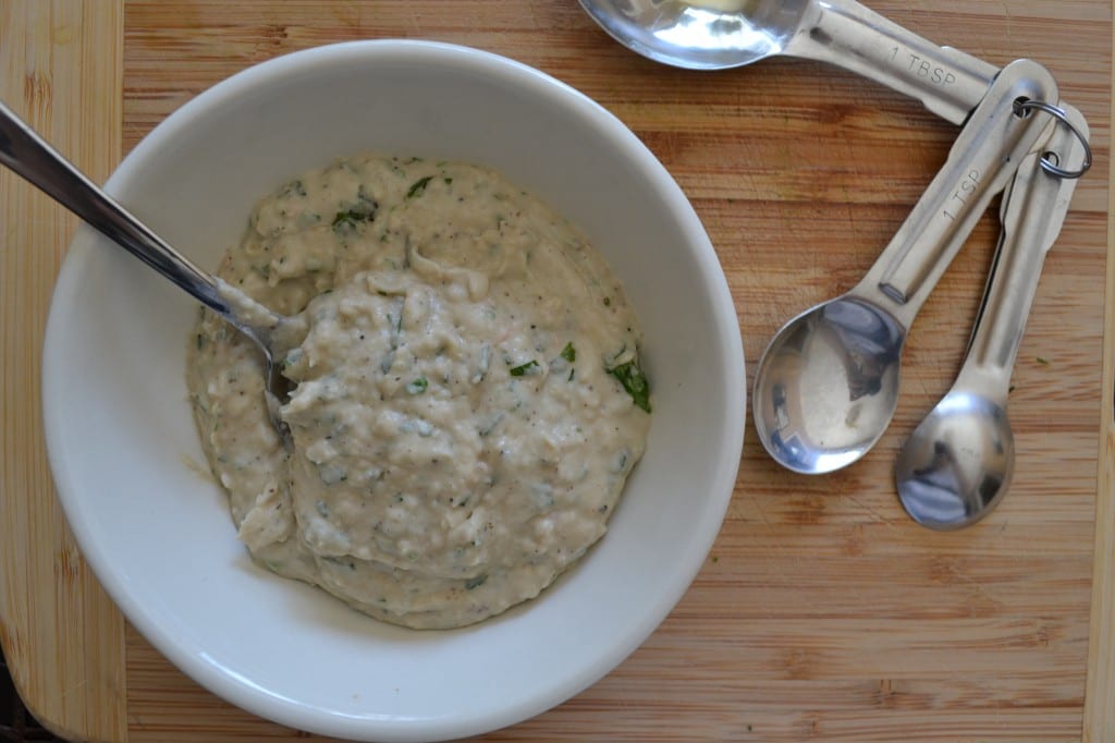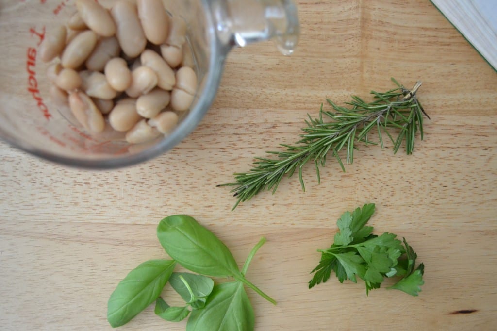 Place the cannellini beans, basil, rosemary, parsley, salt, and pepper in a food processor. Puree on low until mixture becomes smooth and creamy, about one to two minutes.( Side note: This bean mixture is also great as a dip with pita chips or on crostini).