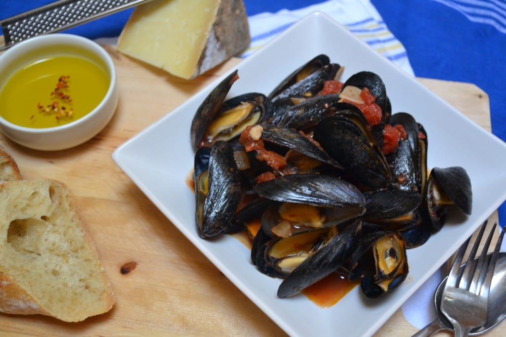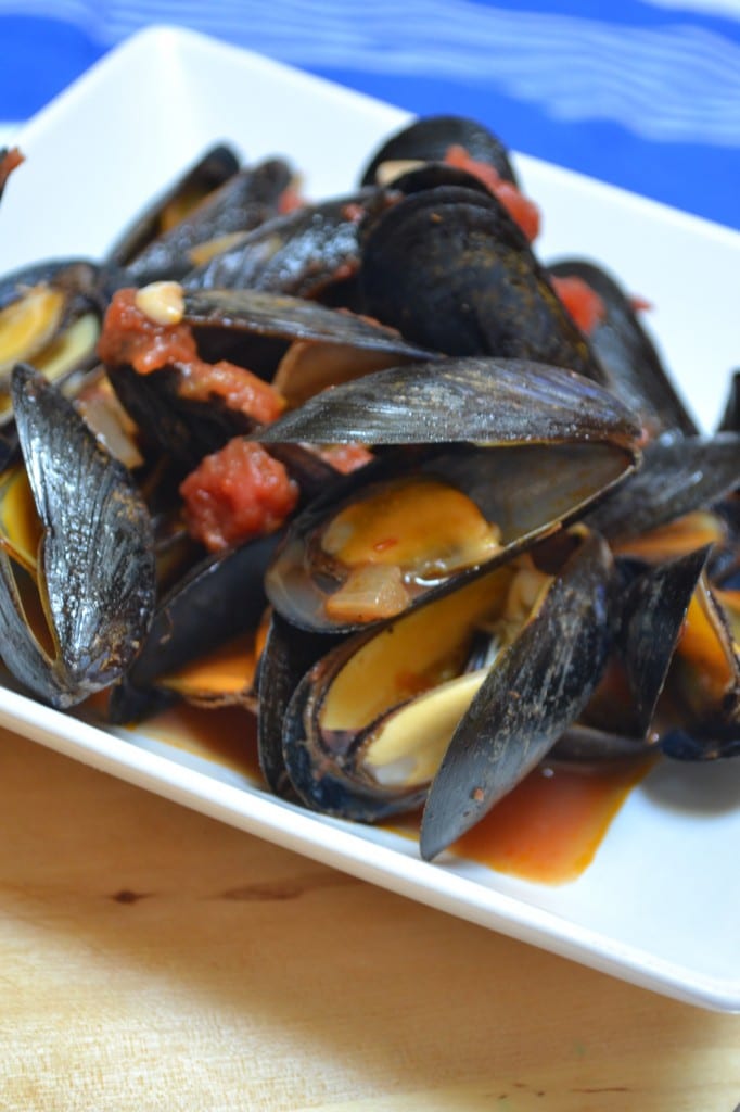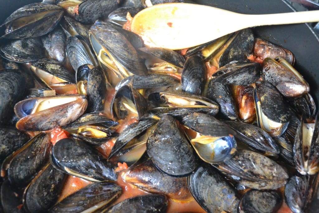 Add the mussels to the skillet and then cover with a lid. Steam the mussels in the sauce until all the mussels open up, about ten to fifteen minutes. Before serving, discard any mussels that did not open.