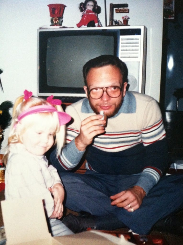 My dad worked in the middle of downtown, Chicago. I would get dressed up, my mom would do my hair really fancy-like, and we would take the train into the city together. I would color on the dry-erase board, stock up on office supplies, and kind of pester my dad until lunch time. During lunch we would head to a restaurant of my choice. My favorites were the Bennigan’s across from the Art Institute, the Bubba Gump Shrimp Co. in Navy Pier, or the Houlihan’s right by Hammacher Schlemmer. I felt so special on those days, holding my dad’s hand and walking through the big city like we owned it just for that day.