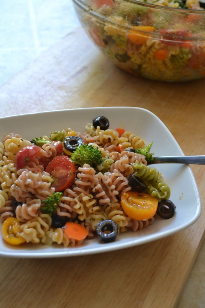 As far as an entree to bring to a party, I wouldn’t recomend bringing burgers, because you might step on the host or hostess’ grilling toes. Try bringing a salad like this Simple Summer Pasta Salad.