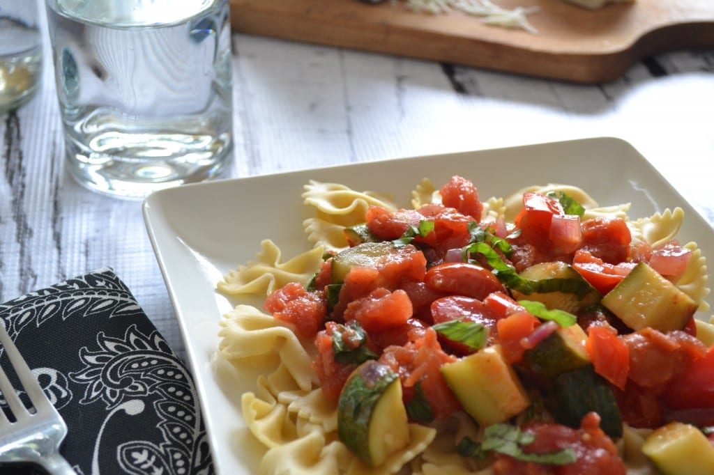 Even though I can’t enjoy the fruits of a summer garden right now, doesn’t mean you can’t! I am sharing with you another summer produce inspired dish that I have made three times in the past month. This meal is so easy and thanks to Barilla PLUS you don’t even need to add any additional protein.