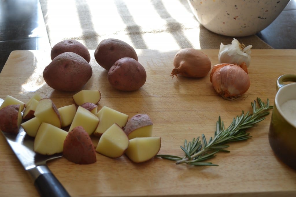 On days when my head gets away from me, I have to take things back to basics. I do some yoga, take a few deep breaths, and make a simple chicken breast along with some roasted garlic and onion red potatoes.