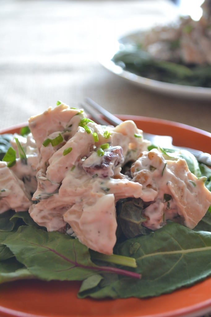 When ready to eat, serve salad on a bed of mixed greens tossed together with a bit of olive oil and lemon. Turkey/Chicken salad will last a week in an air-tight container in the refrigerator.