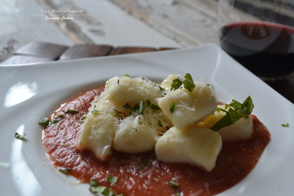Four ingredient homemade gnocchi made with an egg, flour, parmesan cheese, and fresh ricotta.