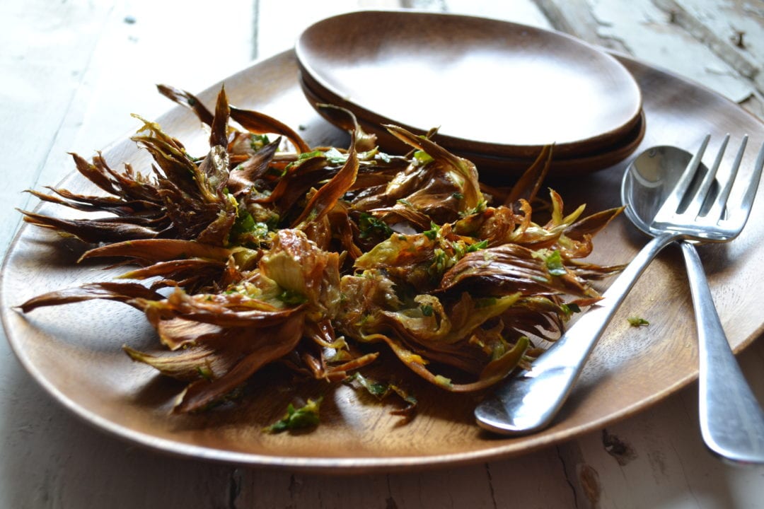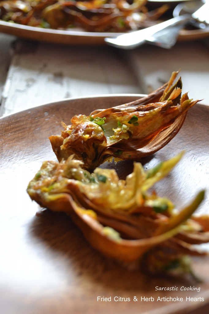 Then heat the oil, give them a quick fry, and then toss with citrus zest and herbs. So easy! It is like a bite size bloomin’ onion, except not breaded and, well, not an onion. Don’t be scurred of the artichoke! They may be a bit prickly, but besides that, I say they are so easy to work with.