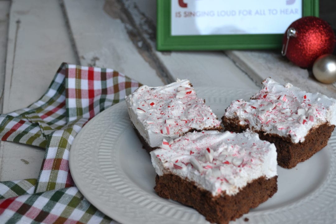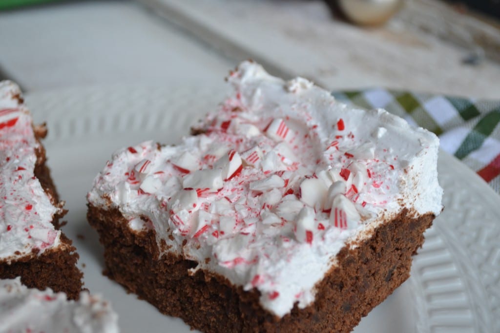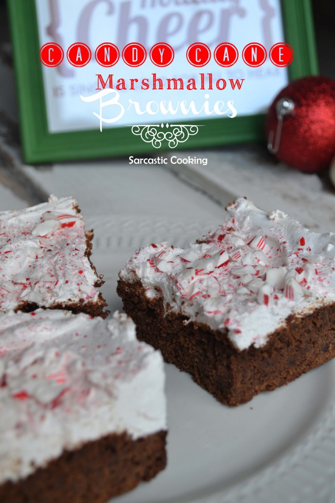 When the marshmallow has cooled slightly, add ½ cup crushed candy cane bits to the marshmallow and mix to combine. Pour the marshmallow over the slightly cooled brownies, top with remaining smashed candy cane bits, and chill for at least an hour or, for best results, chill overnight.