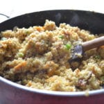 This recipe is a one pot meal. It is gluten free and has all my favorite flavors from breakfast all held together with a few scrambled eggs.