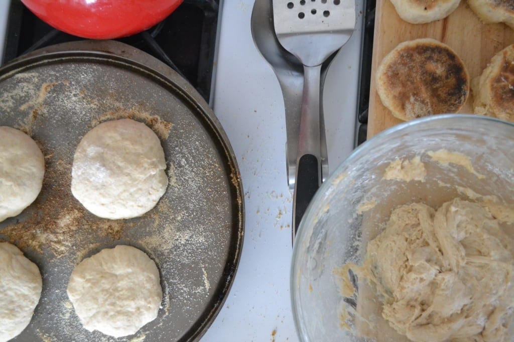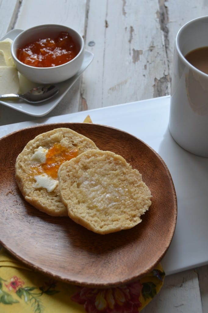 Let English muffins cool for 10 minutes before eating. Store in an air-tight container at room temperature for three days or freeze for up to a month.