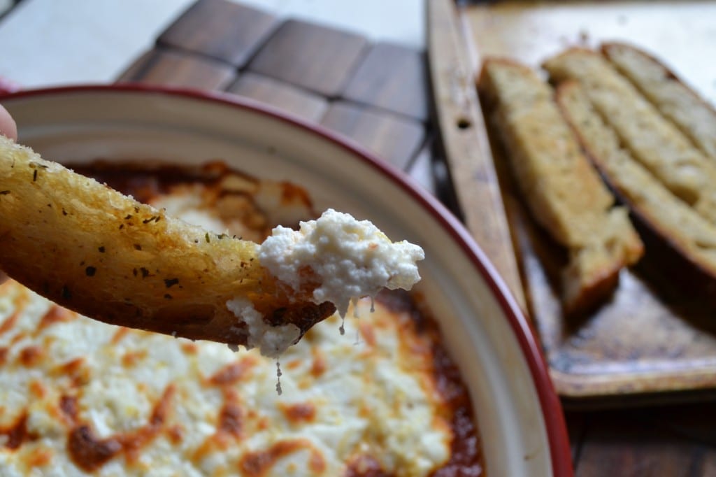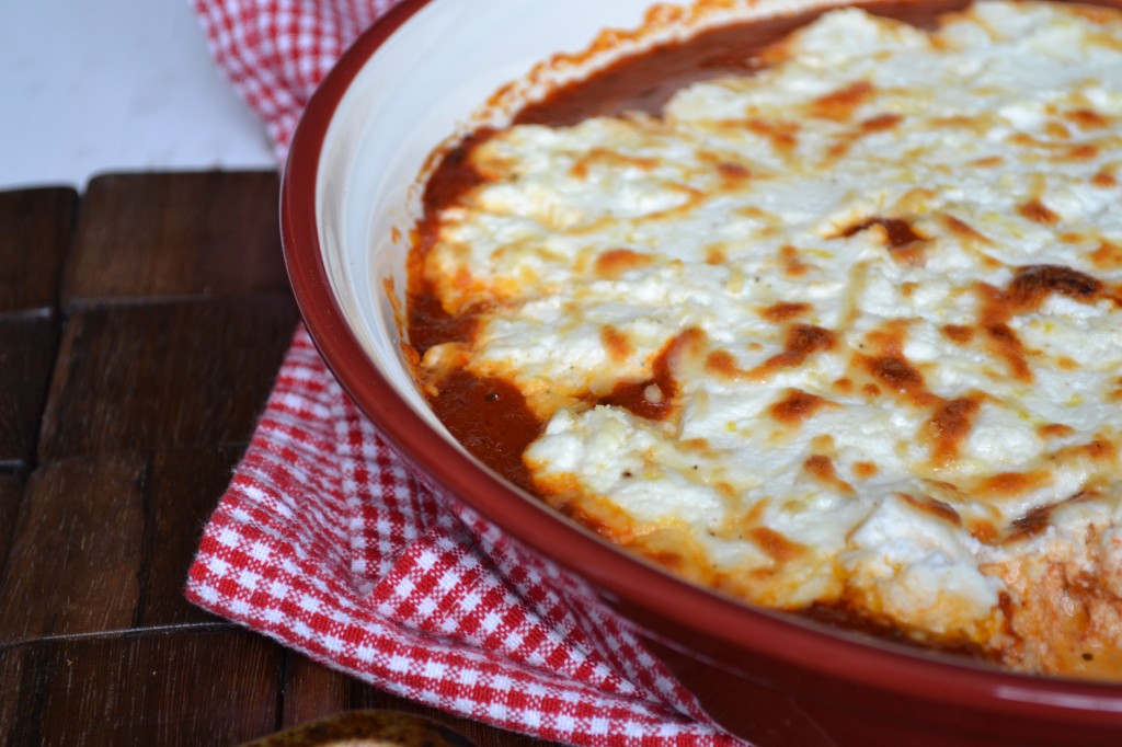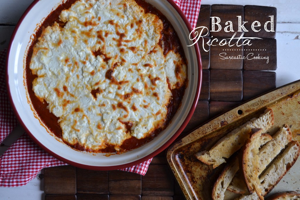 This year we are heading to a friend’s house for the game. I wanted to come up with something easy that would transport well. Baked goat cheese is one of Mike’s and my favorite appetizers of all times, aside from nachos. So I took that inspiration and did a ricotta version.