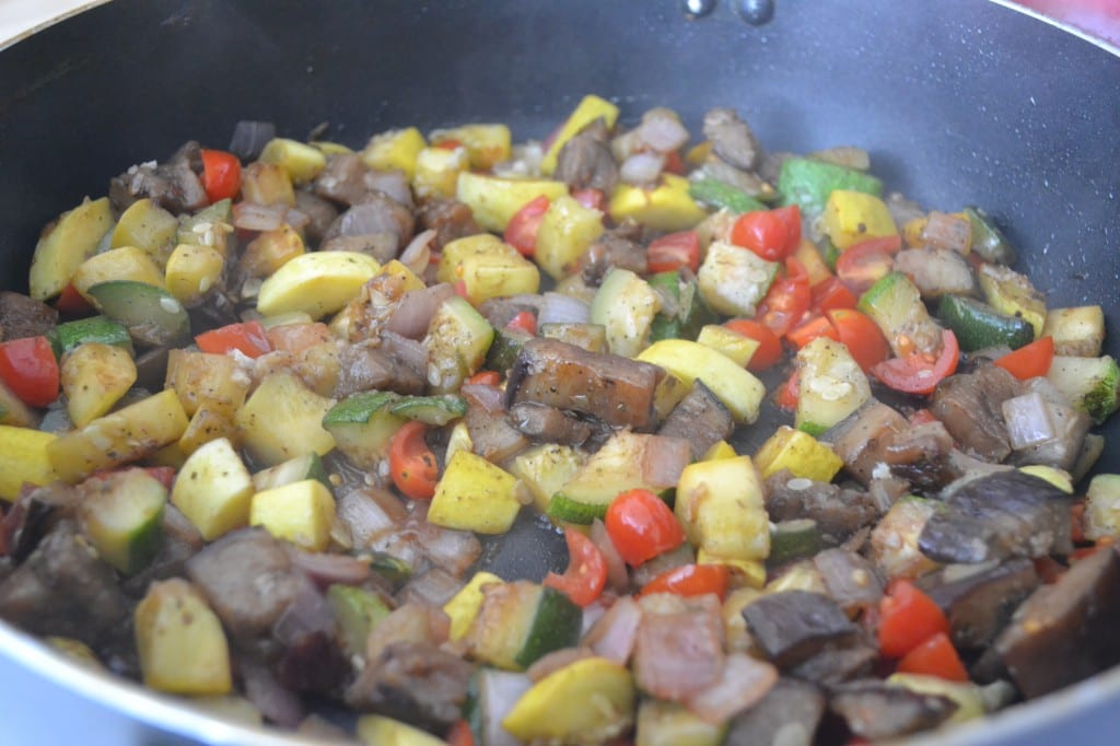 This would happen to be my third interpretation of ratatouille that I have posted here for you all. As you can see I love the flavors in ratatouille. Eggplant, squash, zucchini cooked until golden and caramelized is the secret to any version of this French favorite.