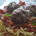 Serve the meatballs with your favorite pasta and sauce. Meatballs will last stored in the refrigerator wrapped in foil for three days. Reheat in the microwave, oven, or in some sauce on the stovetop.