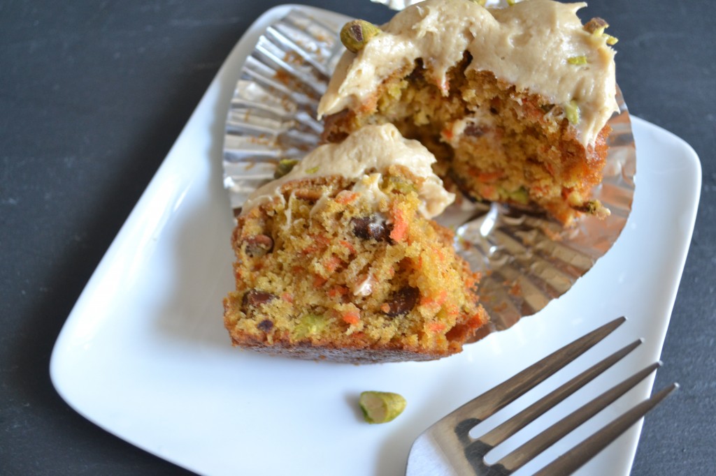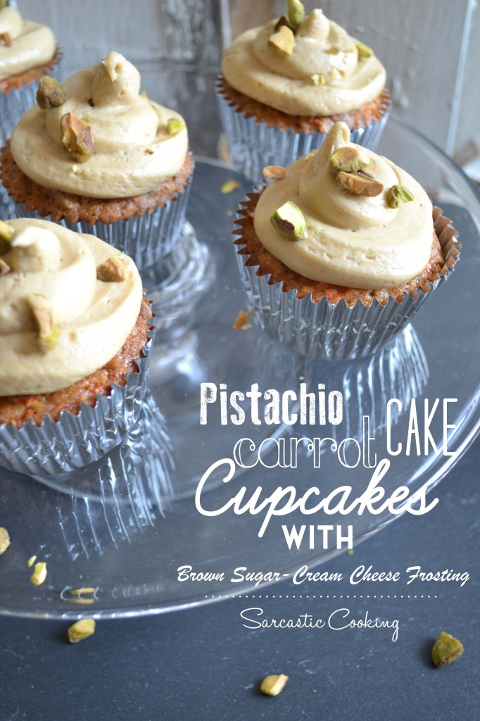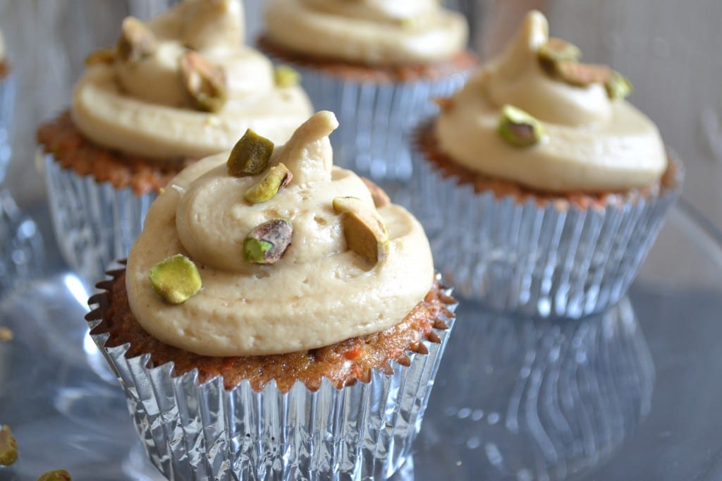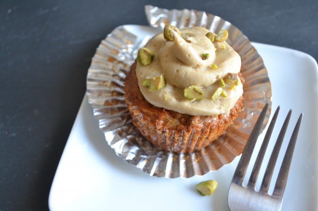 Pistachio Carrot Cake Cupcakes with Brown Sugar-Cream Cheese Frosting