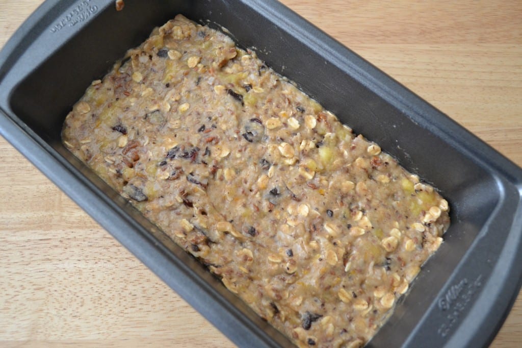 Bake until a toothpick inserted into the center comes out clean, about 50 minutes. Let the bread cool in the pan ten minutes, then transfer to a wire rack to finish cooling. Slice with serrated bread knife. Store at room temperature in an air-tight container for up to five days.