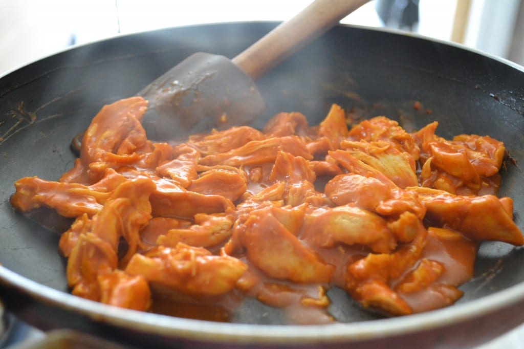 Mike loves buffalo wings. He could eat them every single day. I am kind of over the wing part—are you surprised? I want to try and find other ways to use this vinegary sauce. So, in order to totally blow Mike’s mind, I combined his two favorite foods. Magic!