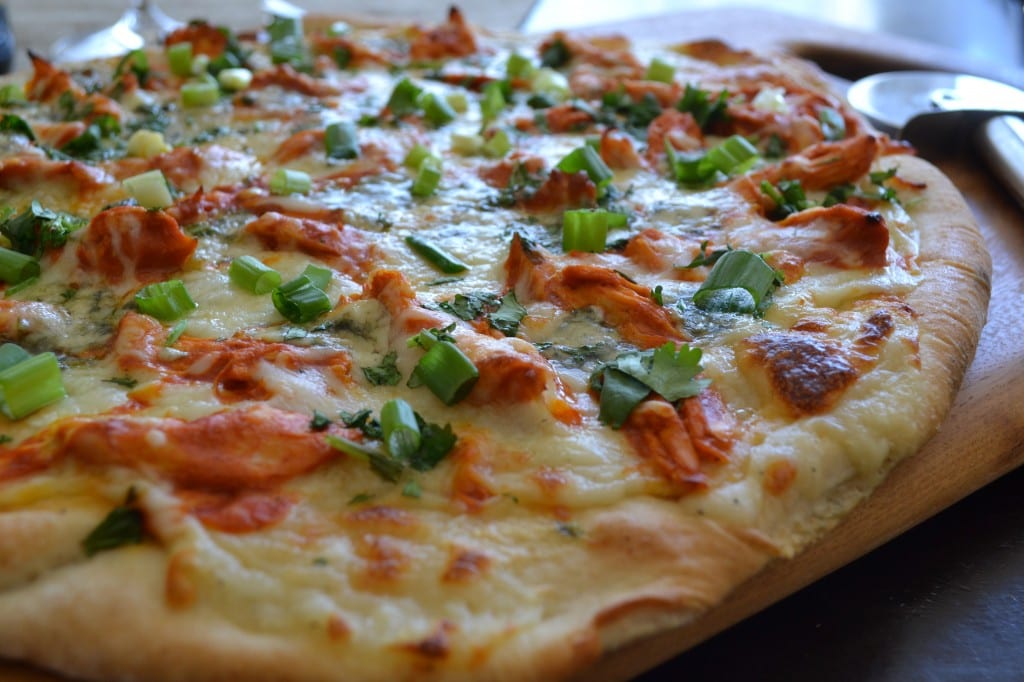 We now have this on a monthly basis. My pizza dough recipe makes two 12-inch pizzas, so we usually have premade dough frozen just waiting to be topped with buffalo chicken, pepperjack cheese sauce, and blue cheese. If you aren’t a wing fan, try it in pizza form—you won’t be disappointed. Even your college self would agree with you!