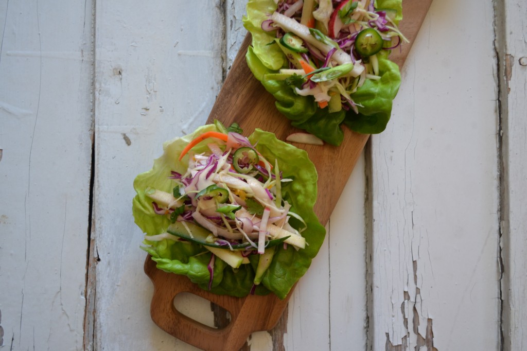 Fear not my friends! I have a salad to end all your worries. It has almost every color (except for blue) in it. You can serve it as a side or in a lettuce wrap, so there is your portion control. And if you are worried about staunchly practicing moderation when it comes to food, don’t worry, if you go a little overboard with this slaw.