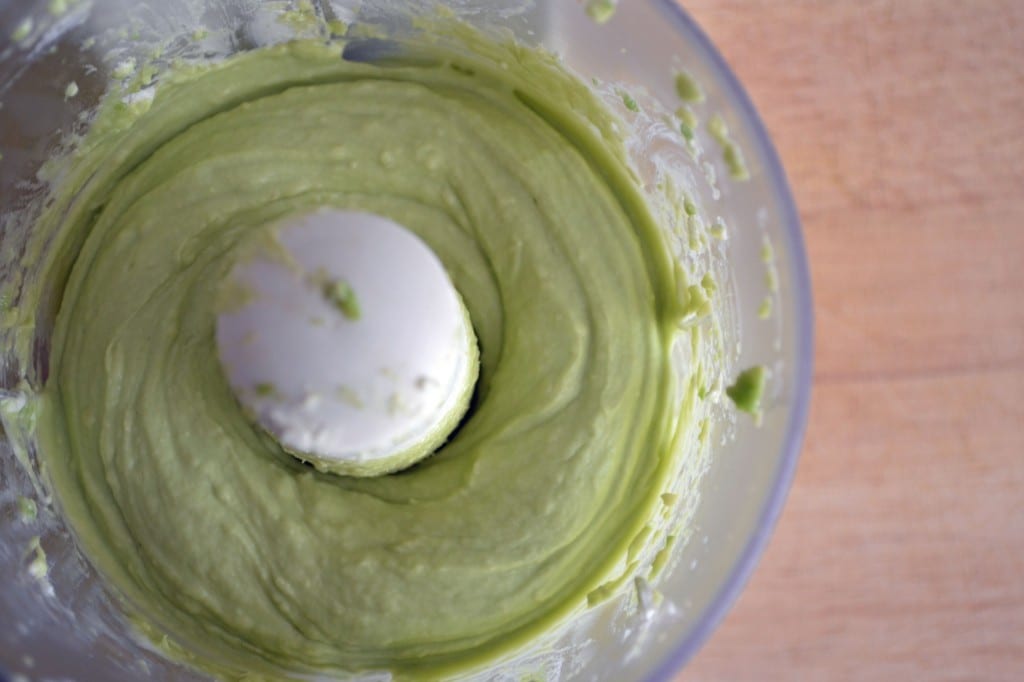 Add the flesh of the half of an avocado to a food processor along with the goat cheese and buttermilk. Puree until silky smooth.