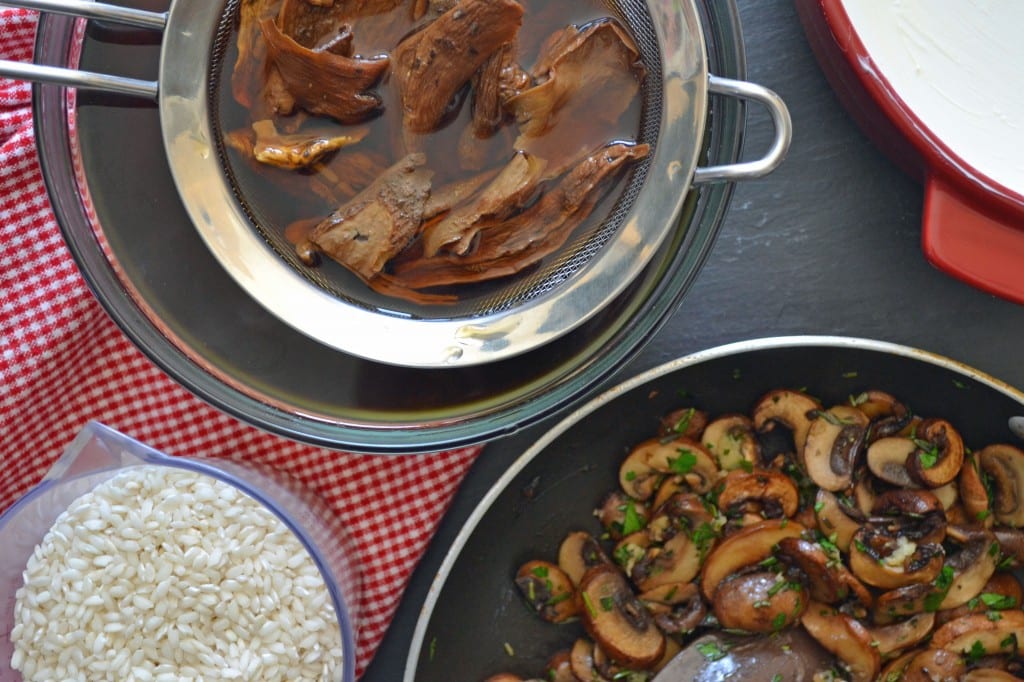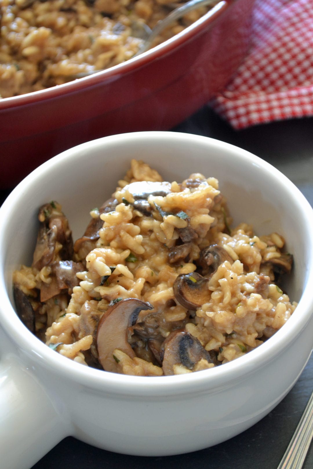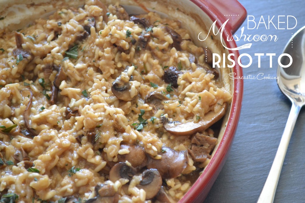 A hands off approach to risotto. Creamy mushroom risotto baked in the oven.