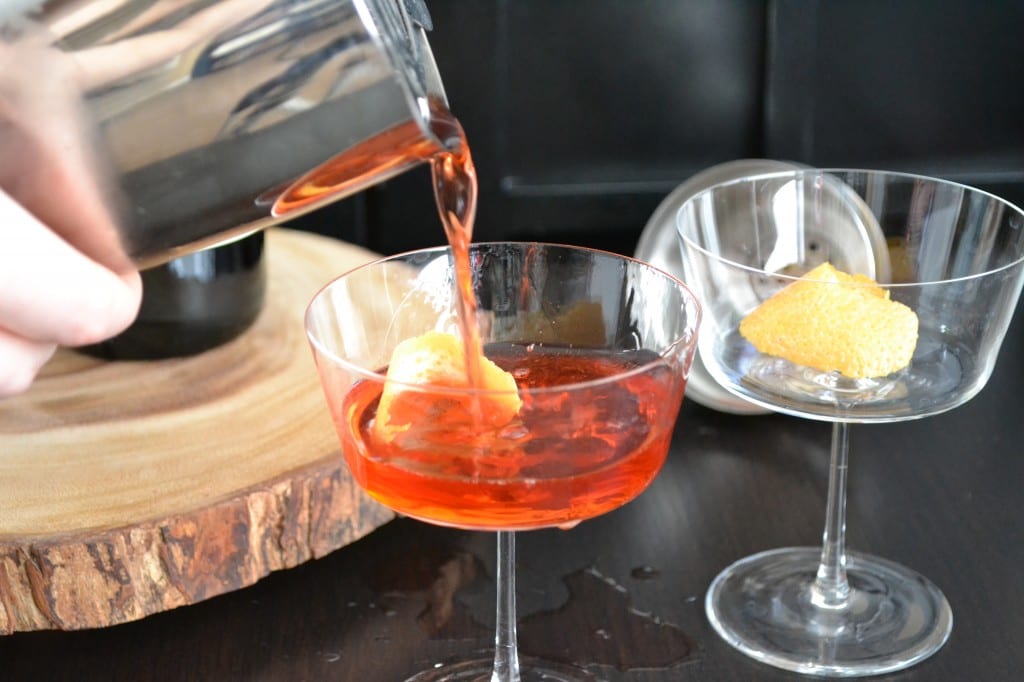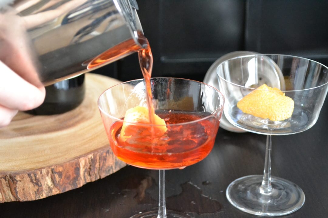 Or you can pour the Campari, gin, and sweet vermouth into a glass with ice in it. Stir and then garnish with an orange peel. Both methods are delicious.