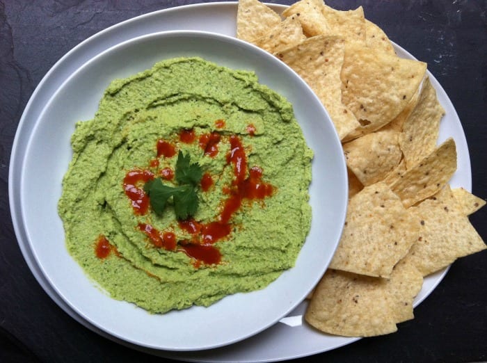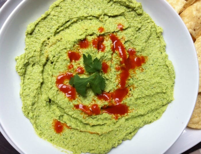So now to the reason you are here! Today I am sharing with you Edamame Avocado Hummus. The marriage of two of my favorite snacks—avocado and edamame. It is versatile—can be used as an appetizer at a party with chips or pita chips, as a spread on a sandwich or a quick snack with carrots. I added sriracha to give it a little spice but feel free to modify that depending on your taste buds.