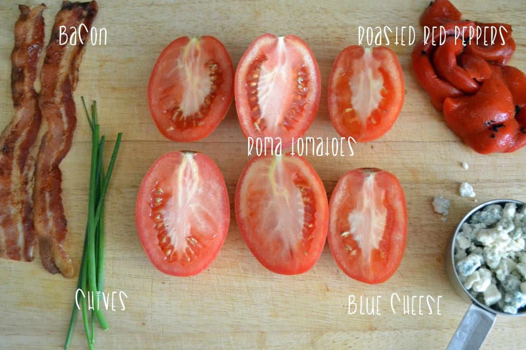 So, if this is my favorite time of the year, you know that it is Mike’s least favorite time of the year. But, I think I have him in the palm of my hand, thanks to my good friend cream cheese! He is so close to eating a straight up raw tomato. Well, maybe not, but baby steps folks. He ate half of a tomato stuffed with bacon, blue cheese, cream cheese, and roasted red peppers. He said it reminded him of a twice baked potato. How? I have no idea. He doesn’t have the best palate. Like I said, baby steps.