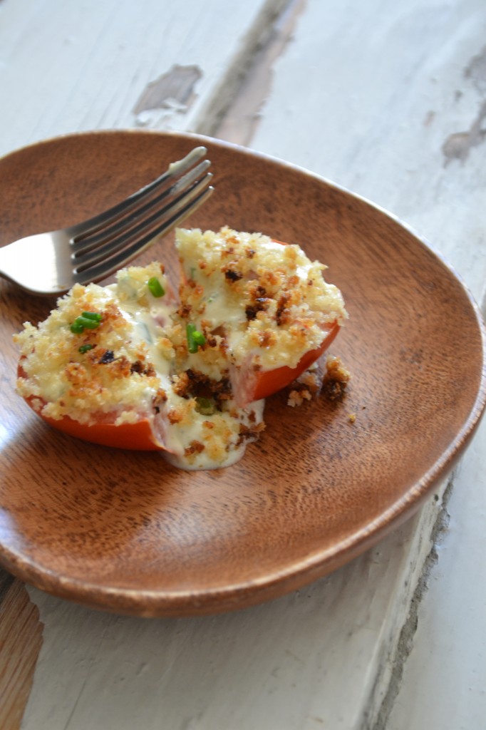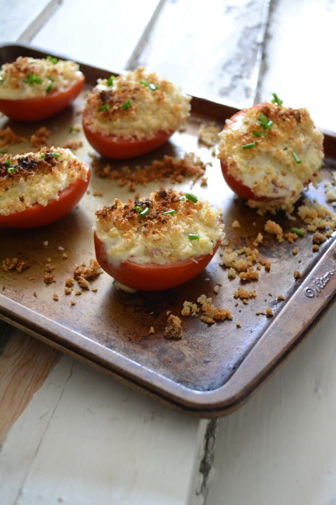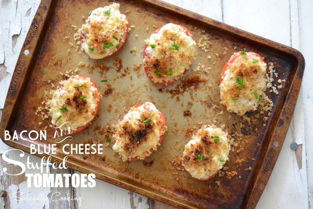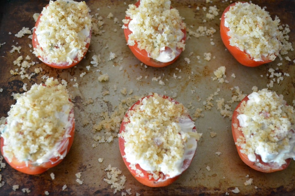 Bacon and Blue Cheese Stuffed Tomatoes with Buttery Garlic Breadcrumbs