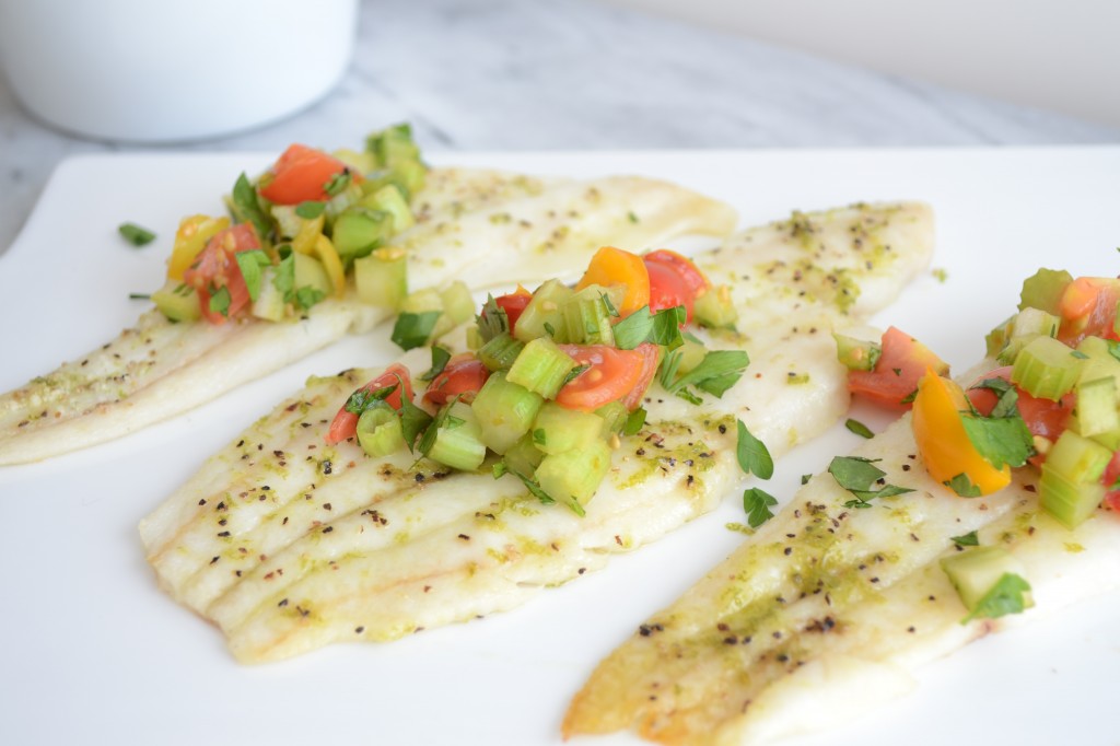 Roasted Sole with Celery and Tomato Relish