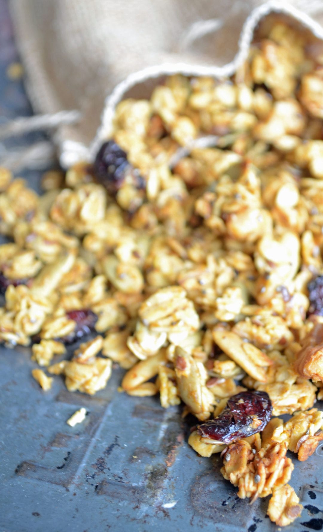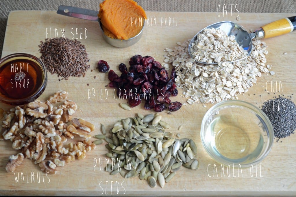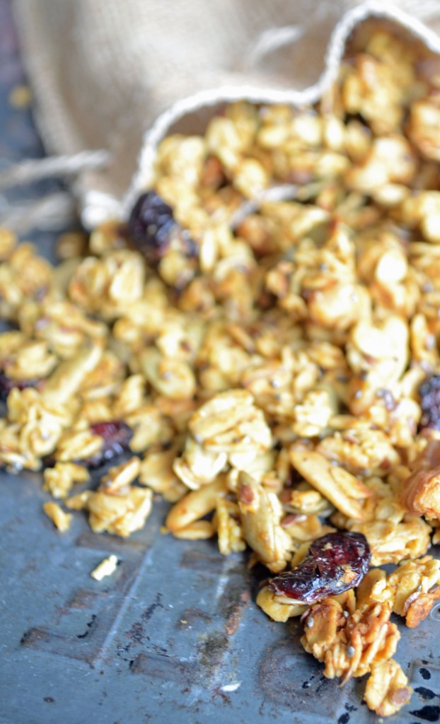 Since it is fall and all, I have rediscovered my love for this granola made with pumpkin pie spices and pumpkin puree. Since I wanted to boost the amount of health benefits, I added some flax seed, chia seed, and pumpkin seed.