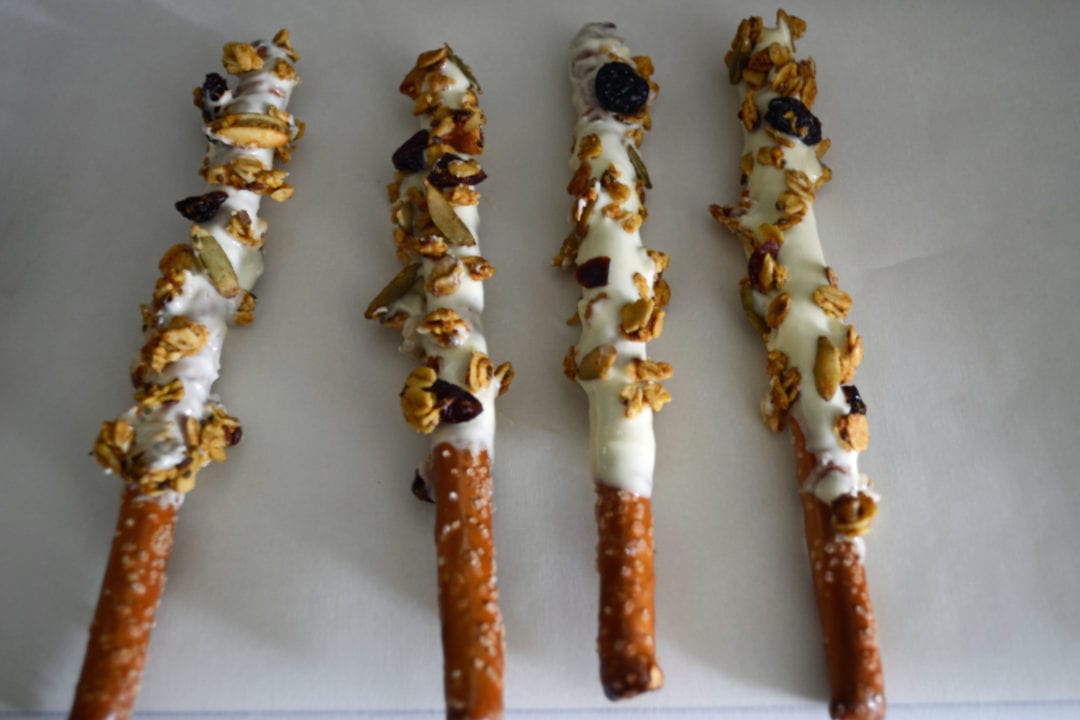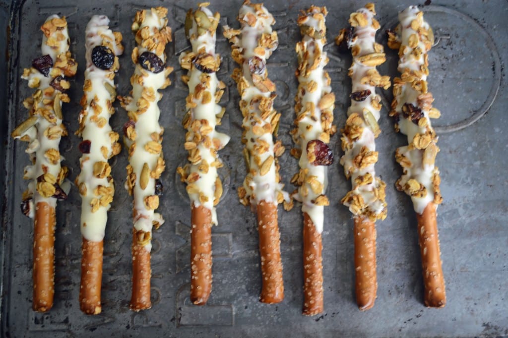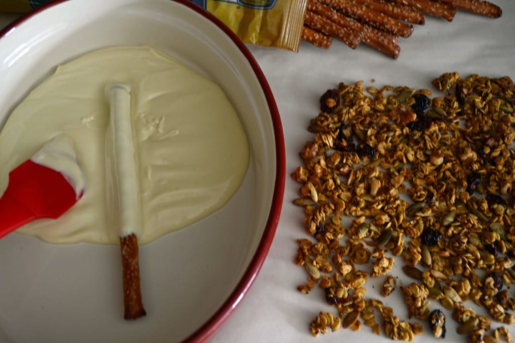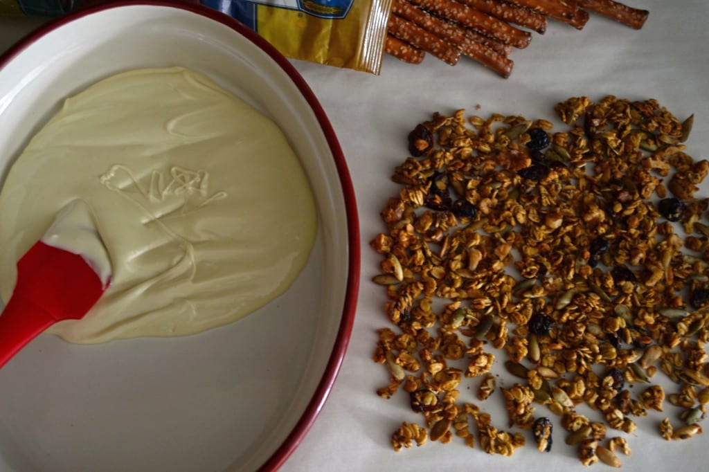 Granola and White Chocolate Covered Pretzels