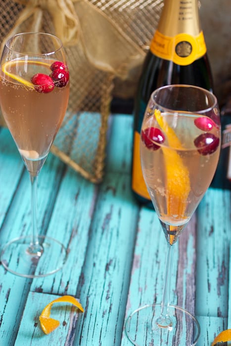 There is no better way to do that than with a drink in hand to clink glasses while you toast to 2014. Not to sound like a complete lush but I’m sure glad Stefanie can enjoy a glass of this Cranberry Orange Champagne Cocktail at the stroke of midnight in a few days (or as late as she can keep her eyes open, sleep is important for a new mama)!
