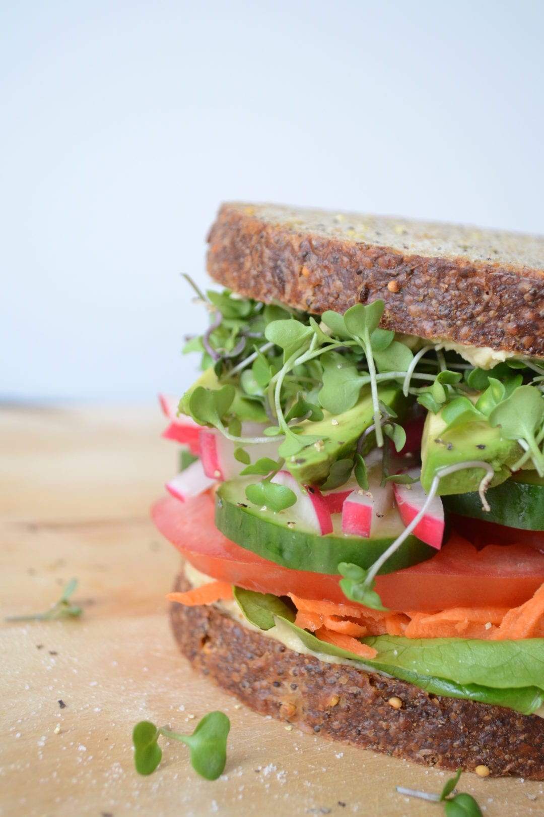 In high school, back in the dark ages of my existence, aka the vegetarian years, my Mom would make me a vegetable sandwich every single day that rivaled the likes of any sandwich artists’ creation.